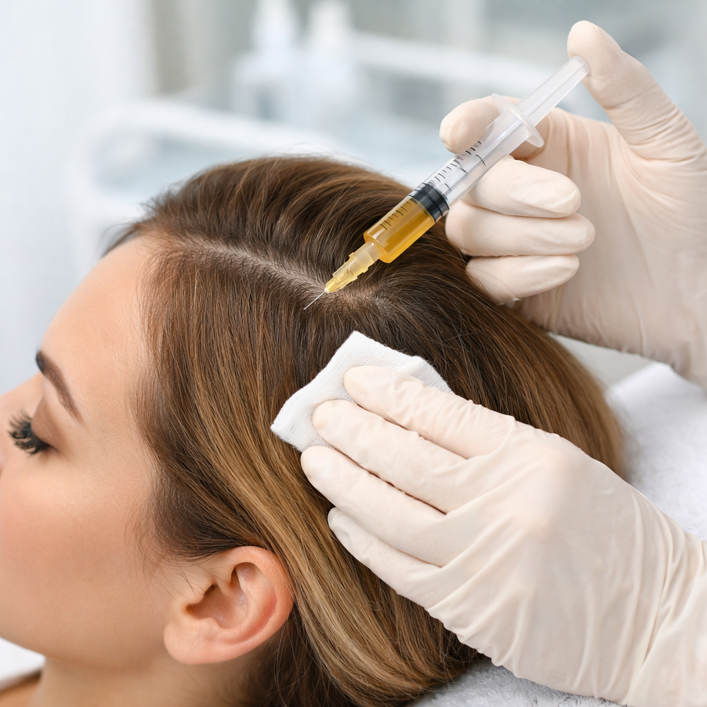 PRP-терапия кожи головы обогащённой тромбоцитами плазмой. Курс из 4 процедур для стимуляции роста и укрепления волос.