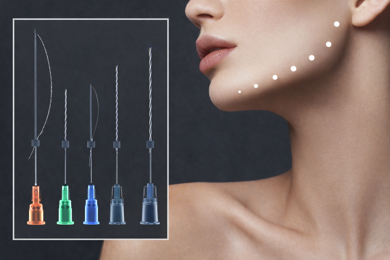 Нитевой лифтинг для создания поддерживающего каркаса кожи. 10 нитей, подтяжка овала лица. Эффект до 12 месяцев.